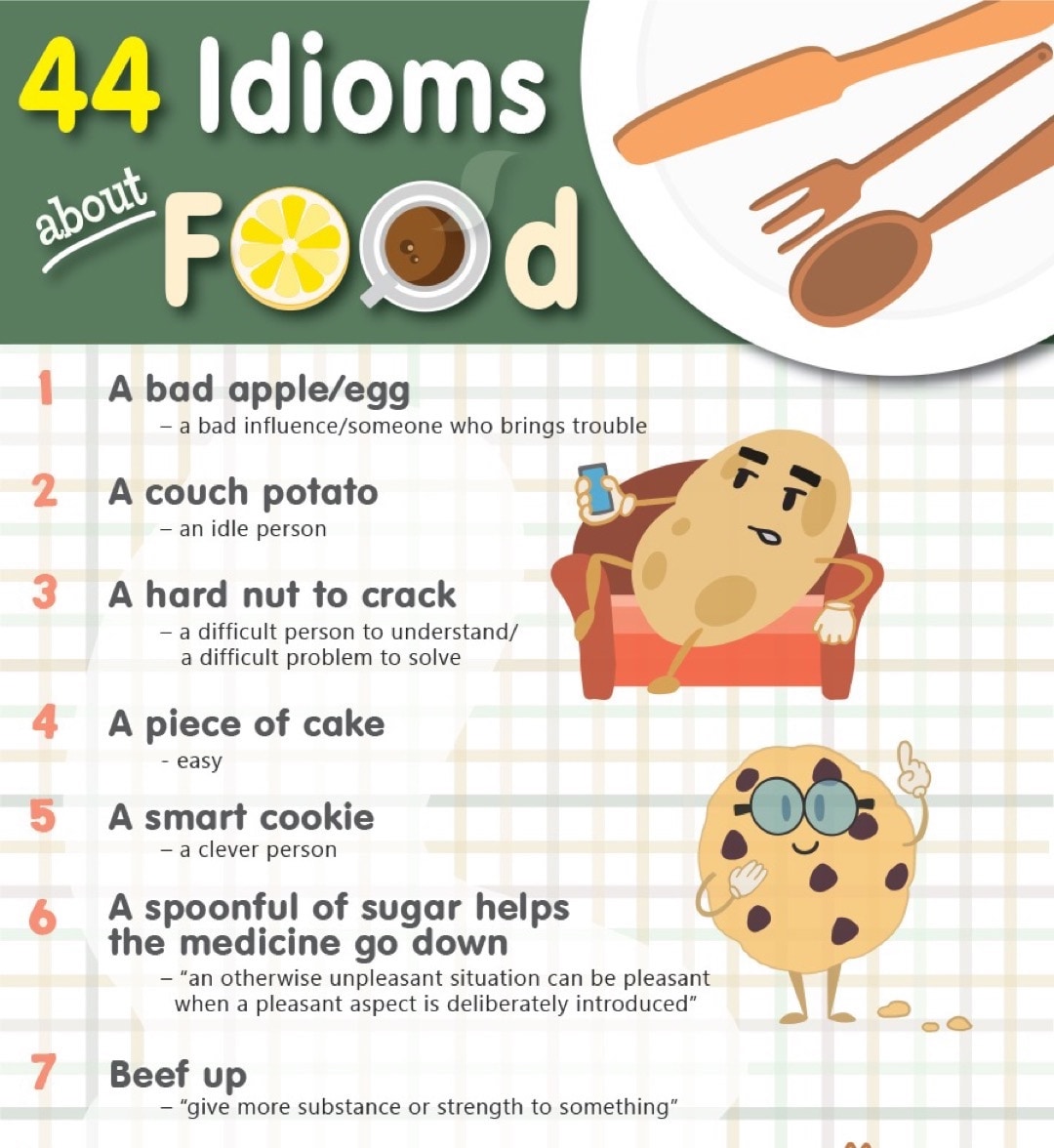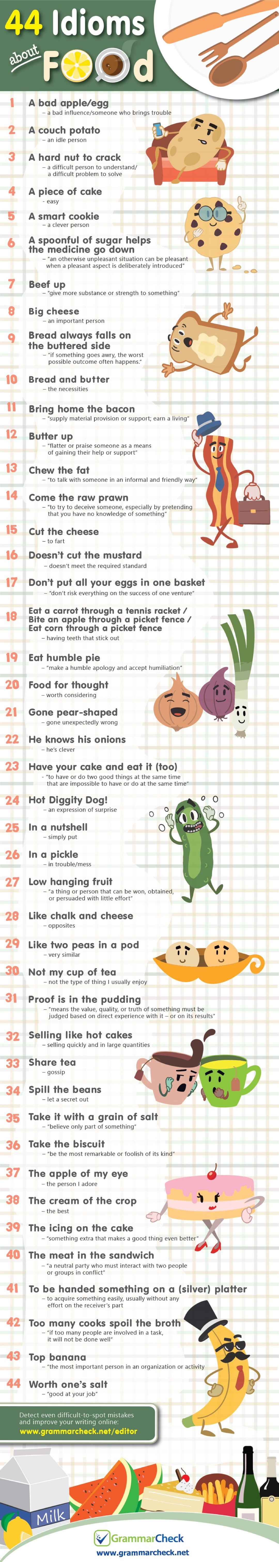 The English Grammar Check blog has just released an infographic that shows the most common idioms about food and eating.