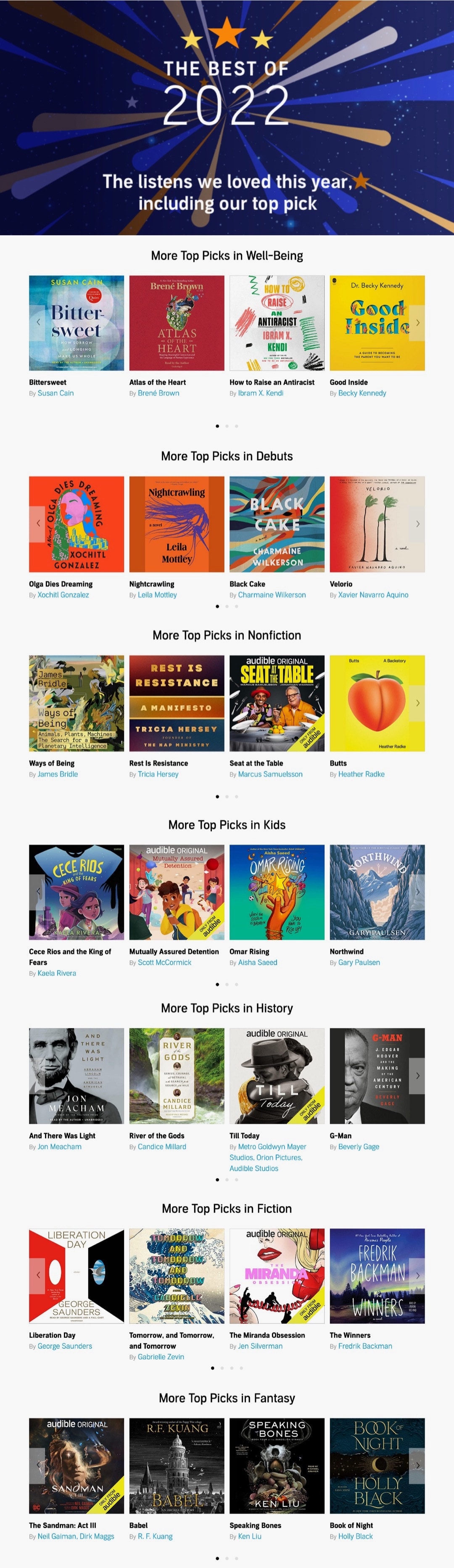 Everyone knows Best Books of the Year lists revealed by Amazon editors. Did you know Audible editors curate a similar list, but focused on audiobooks and podcasts?