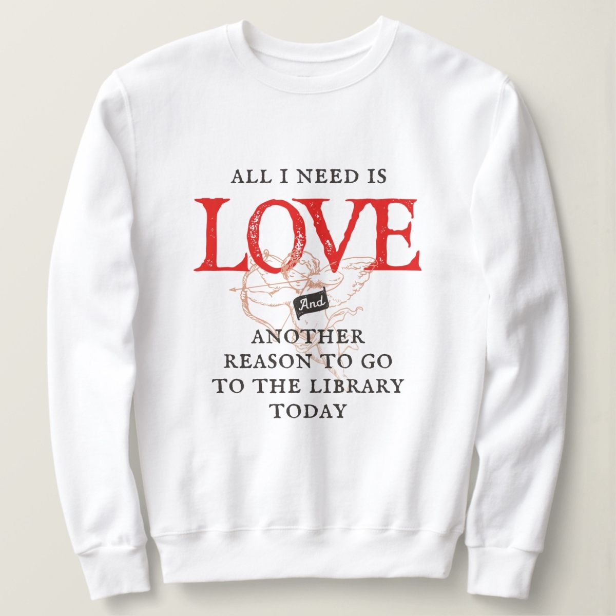 Love is the most important thing in life… but sometimes it’s not. This vintage, gothic artwork says: “All I need is love and another reason to go to the library today”. A great gift idea for a library supporter in your life.