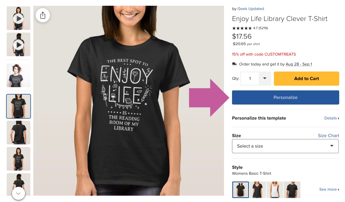 If this option is available, you will see a large “Personalize” button next to the product image.