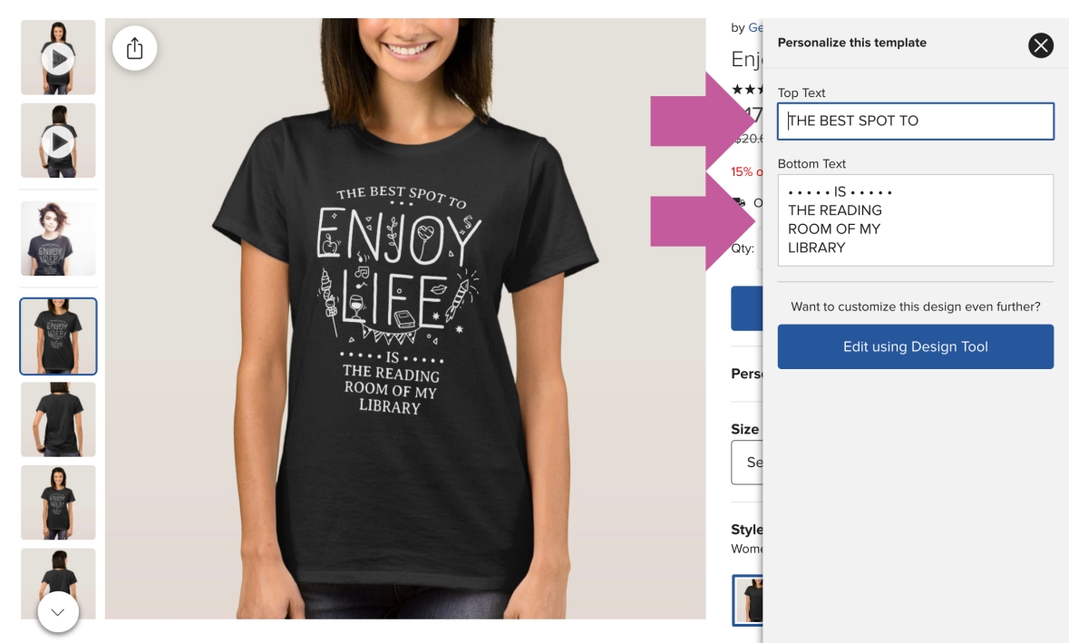 Many designs on Zazzle can be quickly personalized by replacing a blank text with the one you want.
