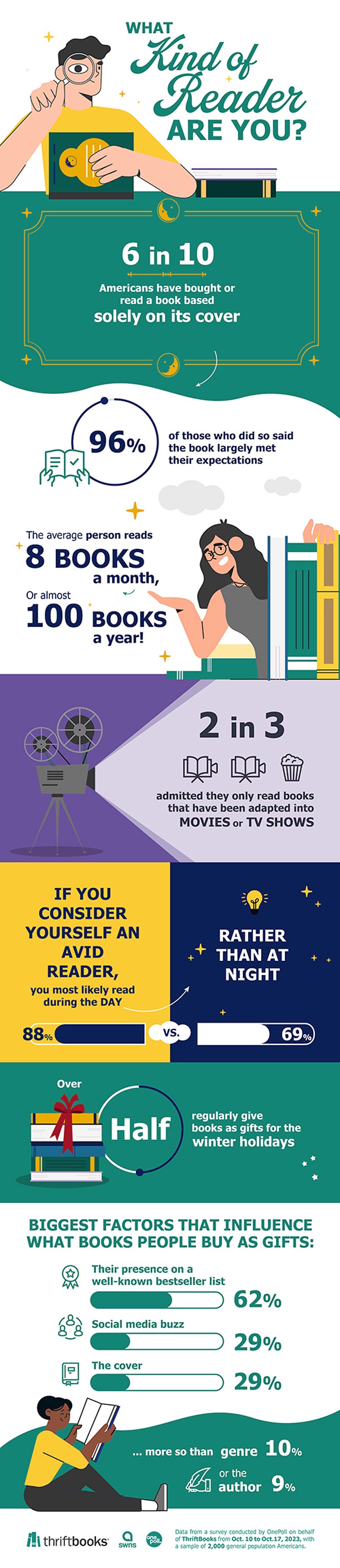 In October 2023, ThriftBooks and OnePoll conducted a survey among 2,000 U.S. adults, asking about their reading habits and their decision-making process related to books.