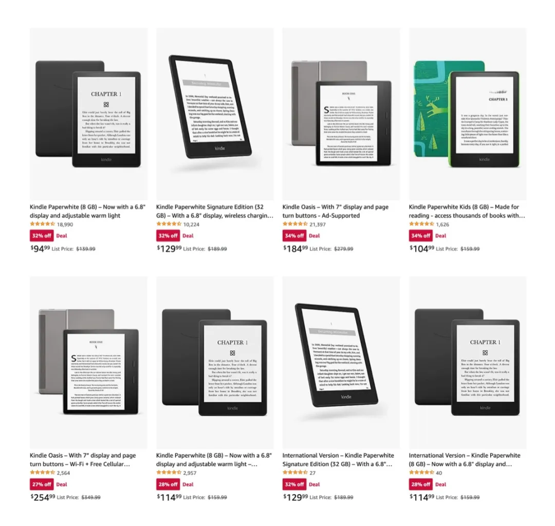 You can get the Paperwhite for $95 and the Oasis for $165. Plus, there are several deals on Kindle bundles, allowing you to save even 44%.
